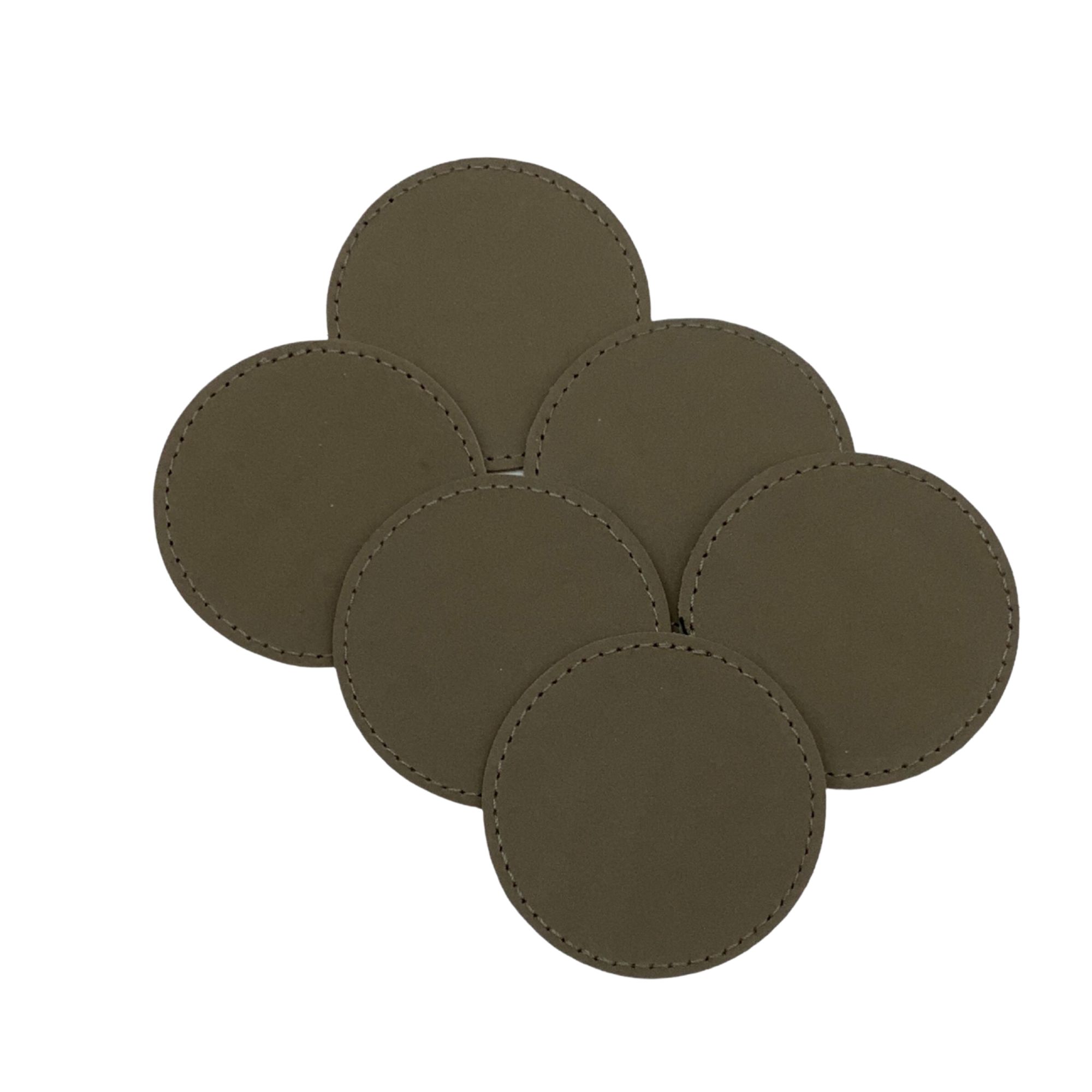Gray ROUND Leatherette Stitched Patches with Adhesive 2.5″ 10 Pack