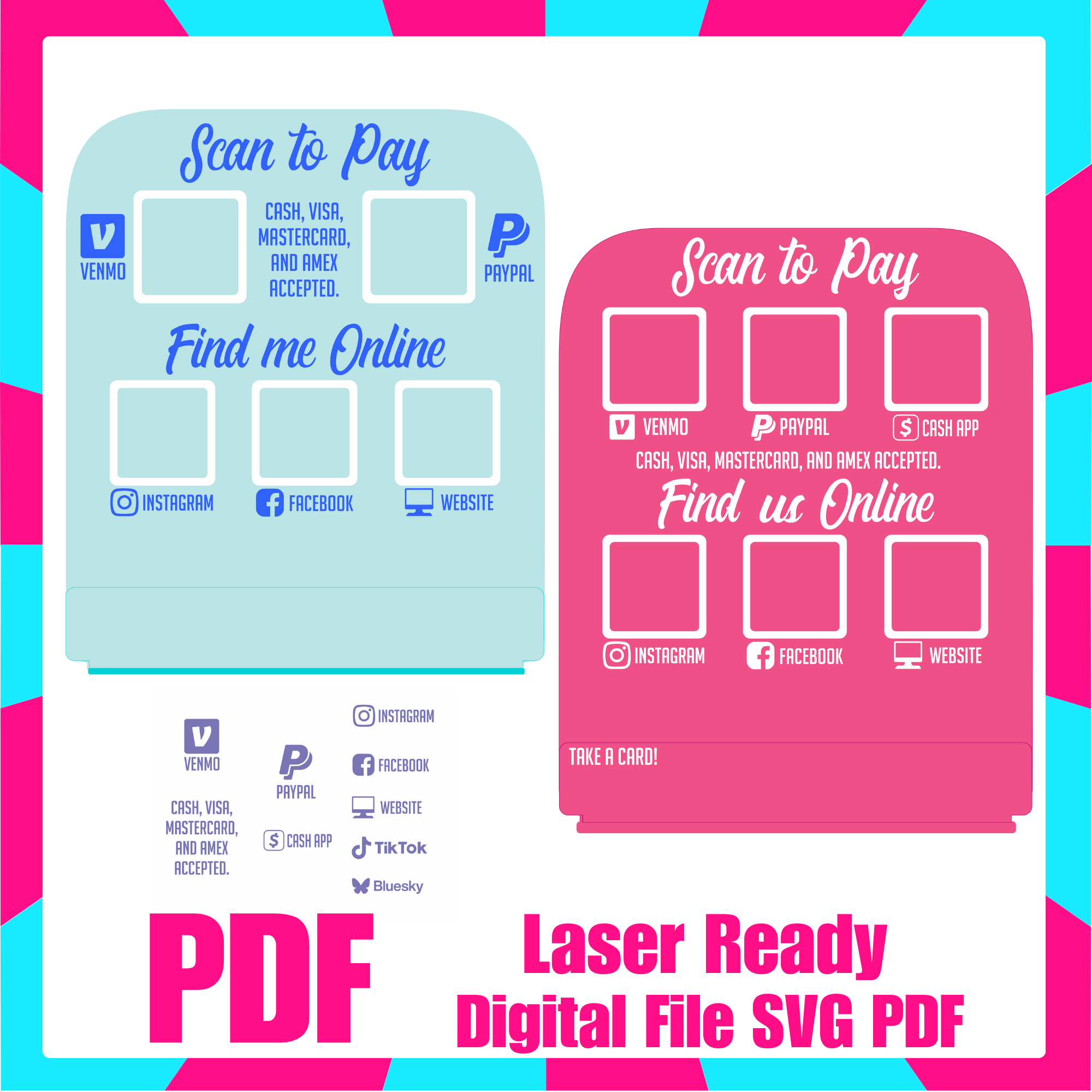 Scan to Pay Sign and Business Card Holder – 2 styles SVG Glowforge Cut File Digital Download PDF
