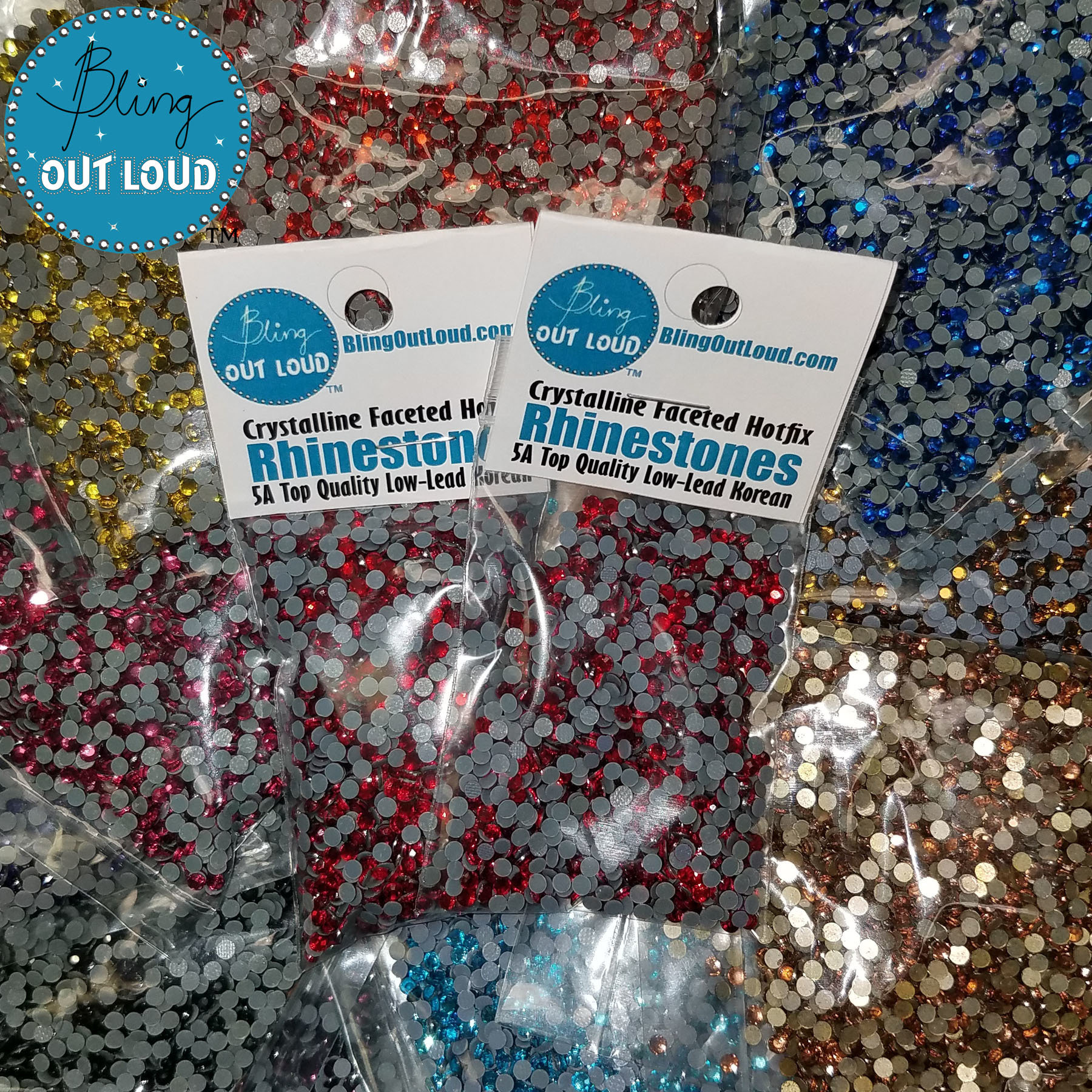 Bling Out Loud uses high quality, low lead, Korean hotfix stones. These stones are machine cut and have the best clarity, shape, and durability for the price. More affordable that Swarovski, Korean hotfix stones have great light refraction, and, when properly applied, will last through hundreds of washes.